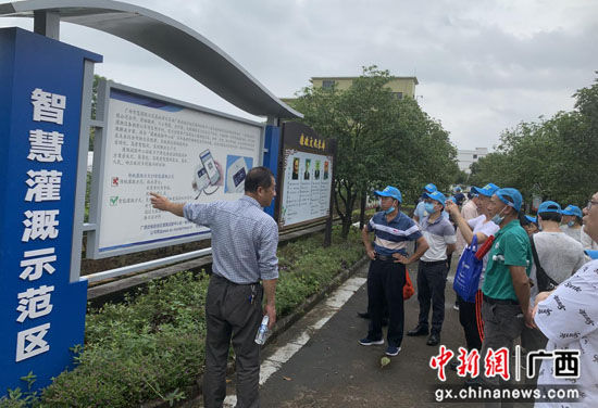 中新网广西新闻6月1日电(王芷芸)6月1日,在第一书记刘林青的组织下,广西桂林市灵川县九屋三合村村委干部20人一行前往广西灌溉试验中心站智慧农业物联网灌溉示范基地参观学习。